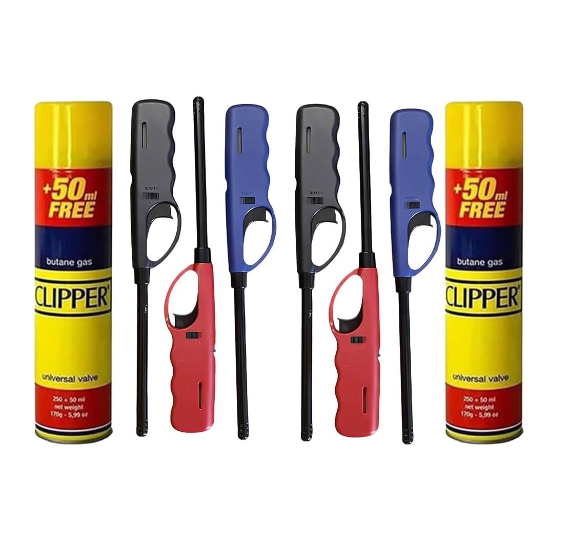 DISPAU 6 mecheros cocina + 2 botellas de gas, Encendedores de gas para cocina, mecheros recargables, Metal o Plástico de, Rústico, Rojo, Azul, Blanco
