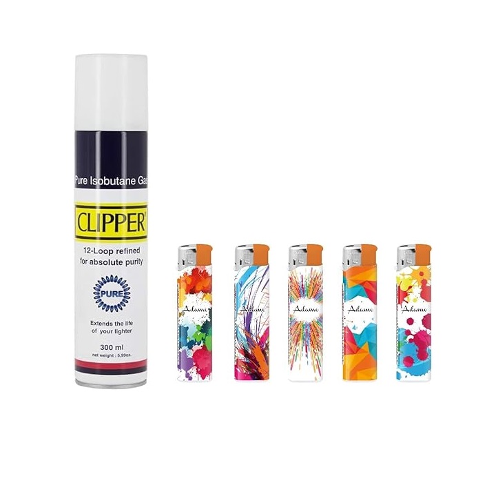 Pack 25 Uds. Mechero Encendedor Redondo Recargable con Piedra recambiable + Pack DE 2 Clipper Gas ISOBUTANO 300 ML para MECHEROS Exclusivo de DISPAU (Trendy Colors)