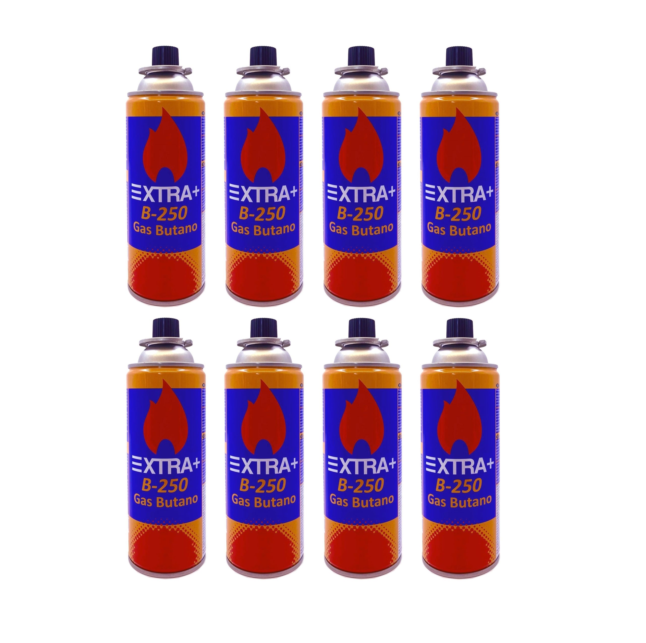 Presenta Pack de Cartuchos de Gas Butano Recambio de Gas Propano Portable Gas Butano Tokai Compatible para Cocina Portátil, Hornillo, Soplete Soldador, Camping B-250 227gr (8, Naranja & Azul)