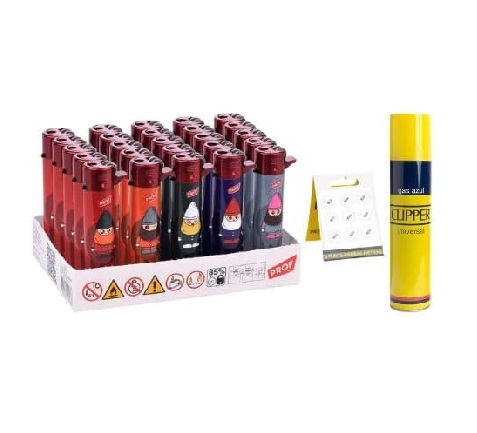 Pack 25 Uds. Dwarves Mechero Encendedor Redondo Recargable con Piedra recambiable Incluye 1 Clipper Gas ISOBUTANO para MECHEROS + Clipper 9 Piedras de Mechero Exclusivo En DISPAU