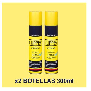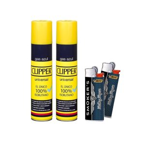 Pack 2 Botellas de GAS CLIPPER AZUL 300 ML para Recargar Mecheros y Sopletes de Cocina + 2 MECHEROS BIC "SMOKER'S" DE REGALO