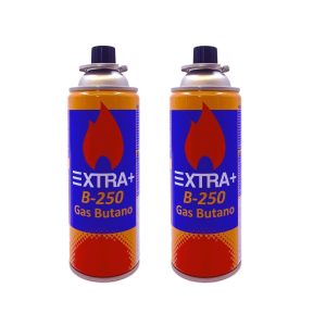 DISPAU Pack de Cartuchos de Gas Butano Recambio Gas Butano Portable Compatible para Cocina Portátiles de Campingaz, Hornillo, Soplete Soldador B-250 227gr (B-250, Gas BUTANO Rojo Y Naranja, 2, B-250)