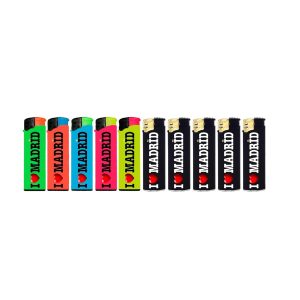 DISPAU Presenta Pack de 10 Mecheros Electronicos con Relieve 3D Soft Touch Tacto Goma Diseño Souvenirs Madrid Colección, Mechero Soft Touch All Black & Multicolor.