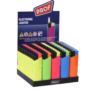 DISPAU 50 encendedores Electrónicos Prof Touch Rubber Tacto Goma 5 Colores Variados Fluorescentes con Llama Ajustable.