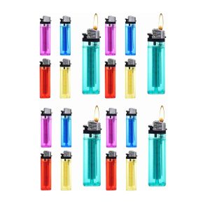 DISPAU Pack de 20 Mecheros Desechables Transparentes de plástico con Rueda de Piedra, Enciende con Estilo y Comodidad
