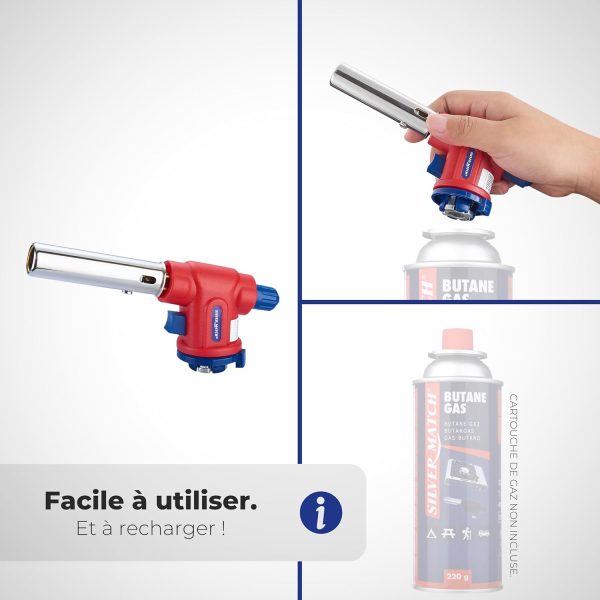 Exclusivo de DISPAU Soplete De Cocina, Profesional Antorcha Butano Encendedor Mechero, Recargable, con Bloqueo de Seguridad & Llama Ajustable para barbacóa Crema Cámping, Pack x12 (SOFT)