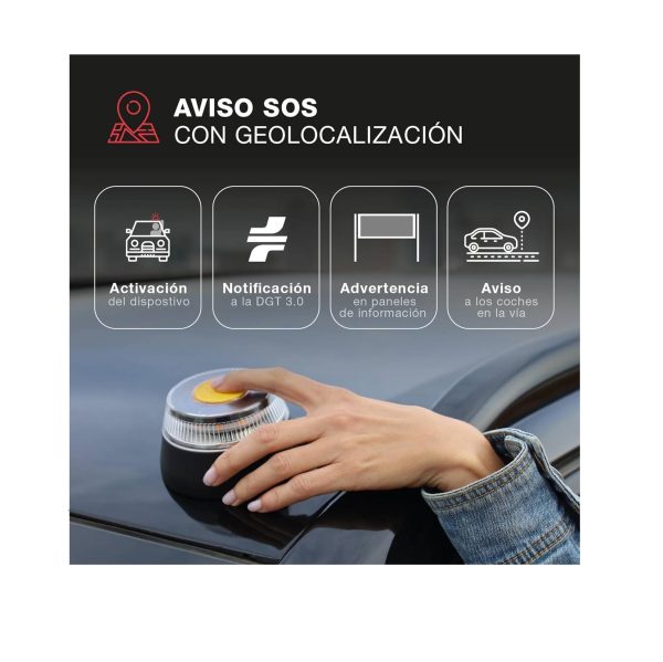 Luz de Emergencia Baliza V16 Geolocalizada, Homologada por DGT con Conectividad IoT, Datos Incluidos hasta 2038, Base Magnética, Con Funda protectora y Pilas Incluidas Una Unidad