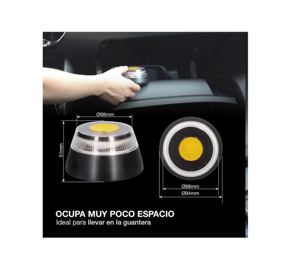 - 🧩 Instala en segundos sin bajarte del coche: Sacala de la Funda Protectora (INCLUIDA) y pegala en la parte superior de tu coche , Tiene una Fijación magnética segura. Tambien su puede Señalizar desde el interior de tu vehículo sin exponerte al tráfico ni condiciones peligrosas.
