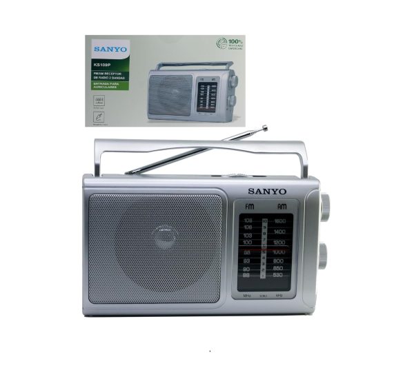 SANYO KS109P Radio Analógica Sobremesa Am/FM Red y Pilas. Color Plata