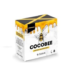 Black Coconut Carbón DISPAU COCOBEE Premium de 26 X 26 MM Carbón Natural de Coco Premium Cachimba y BBQ - Briquetas de Carbón de Coco Shisha y Barbacoas. (9 Unidad)